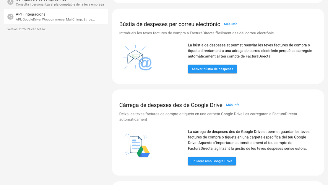Si necessites més potència d’integració, hem posat a la teva disposició un accés via API perquè puguis automatitzar i personalitzar la càrrega de dades o recollida de dades des de serveis externs a FacturaDirecta.