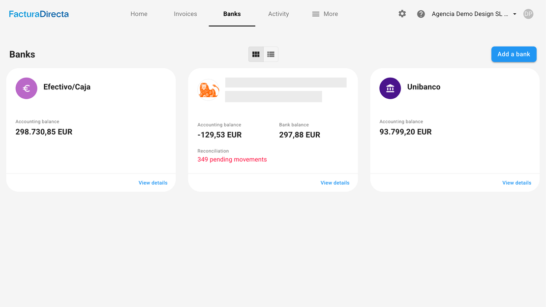 Connect your banks to view and reconcile transactions. Collect from your customers or pay your suppliers and employees with SEPA direct debits.