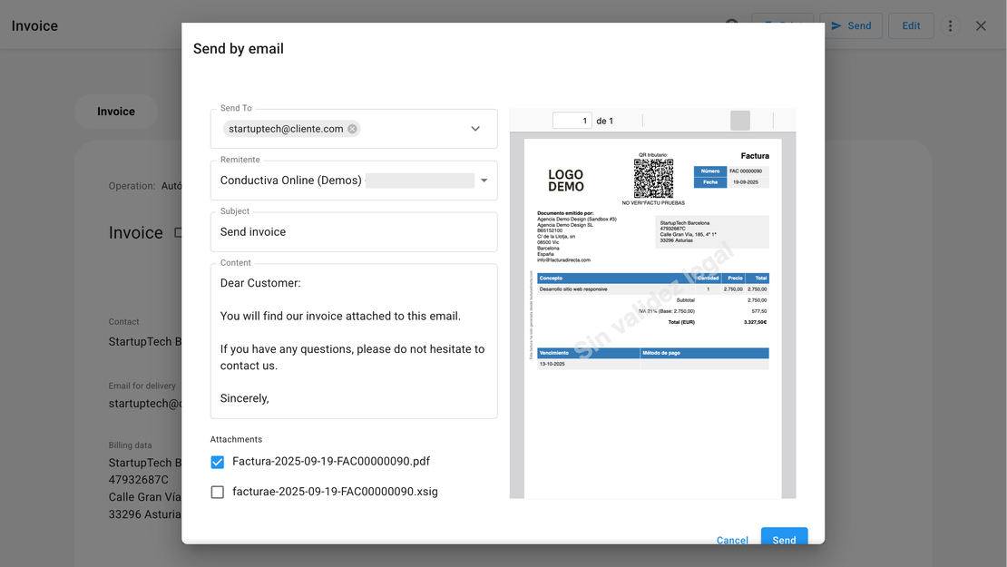 Send your invoices directly from FacturaDirecta.