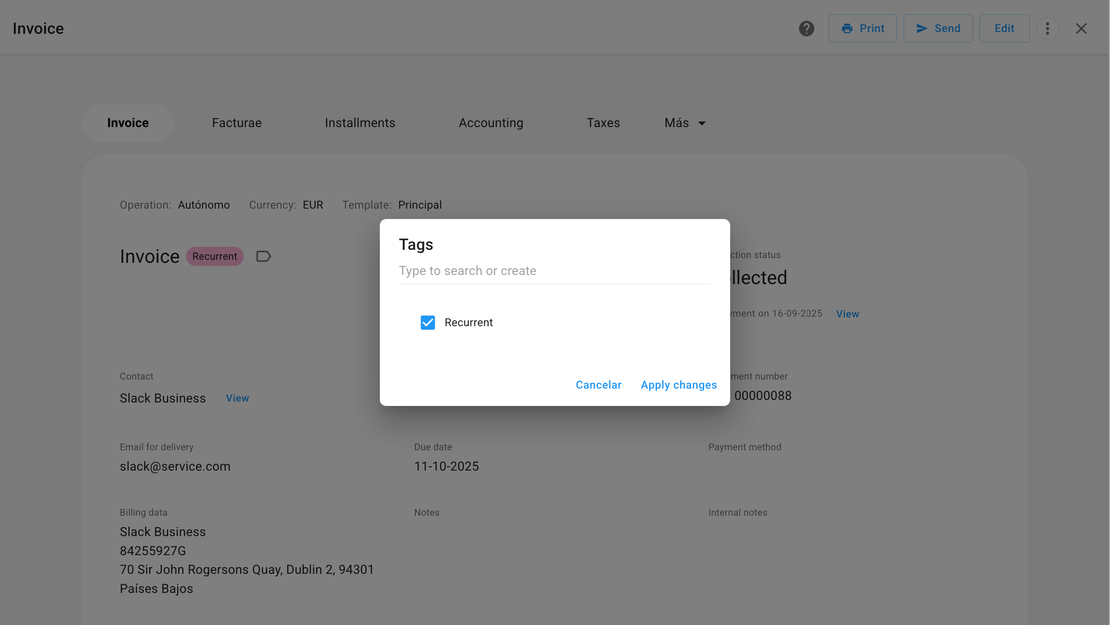 Manage multiple brands within the same account and customize their identity in each document. Create templates with their own logo, colors and typography for each one, so that invoices, quotes and delivery notes always reflect the correct image of the brand you work with. This way you can run your multi-brand business clearly, organized and professionally.