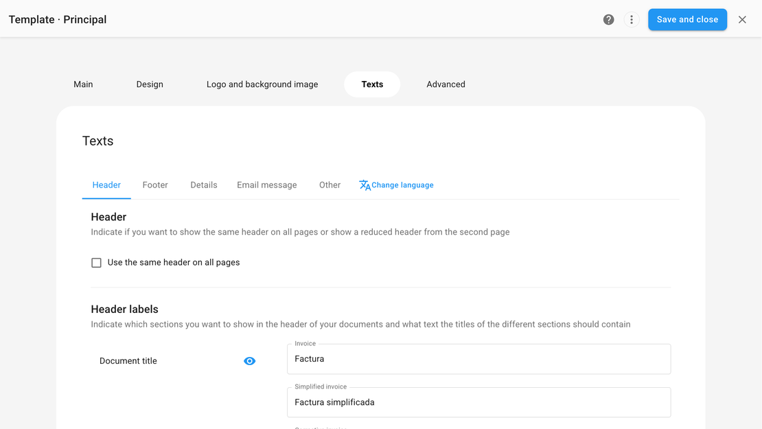 Invoices in multiple languages
