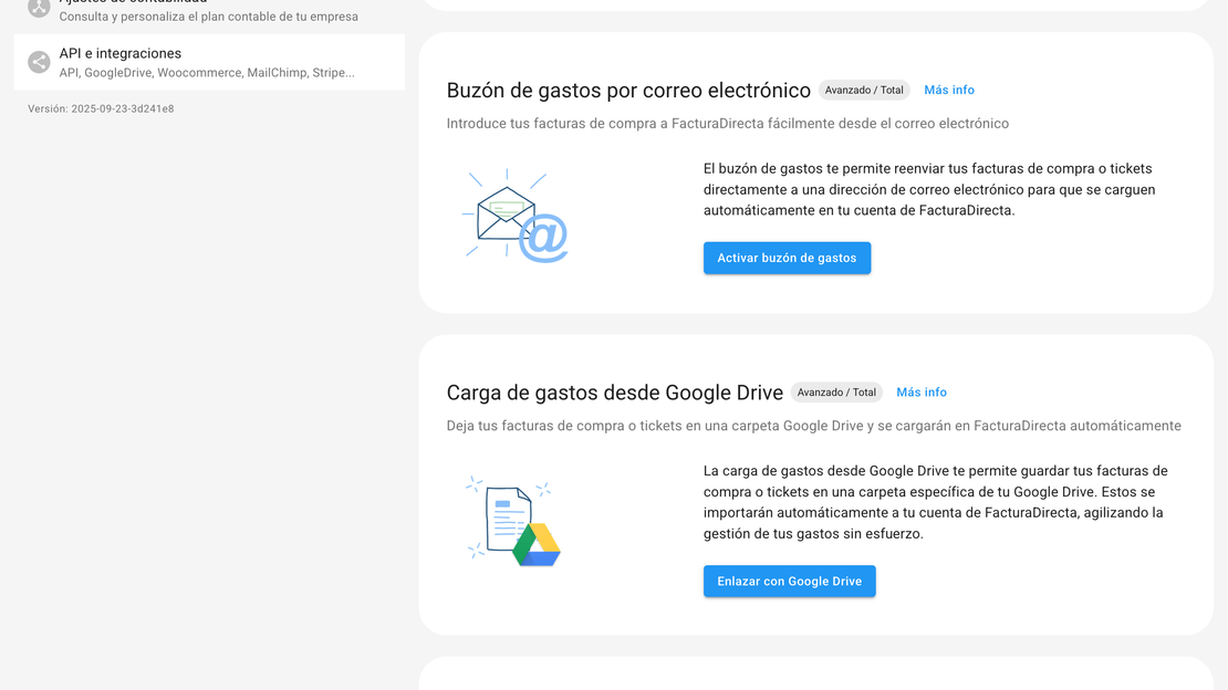 Carga las facturas de compra, gastos y nóminas de tu negocio desde una carpeta de Google Drive o reenviando un email a tu dirección de gastos.